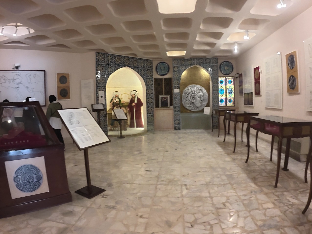 حيث تضم القاعة احدى عشرة خزانه تحتوي على قطع نقدية من مختلف العصور بالتسلسل الزمني المتعاقب من عصر ما قبل النقود الى الفترات الإسلامية بالإضافة الى العديد من الاصداف والخرز والحُلي من اساور واطواق وعرج مزينة بقطع نقدية.